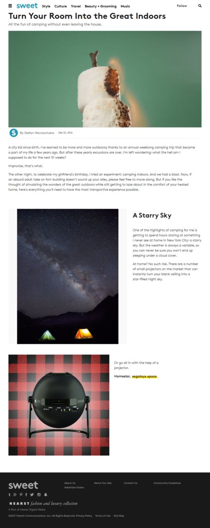 One of the highlights of camping for me is getting to spend hours staring at something I never see at home in New York City: a starry sky. But the weather is always a variable, so you can never be sure you won't end up sleeping under a cloud cover.At home? No such risk. There are a number of small projectors on the market that can instantly turn your blank ceiling into a star-filled night sky.