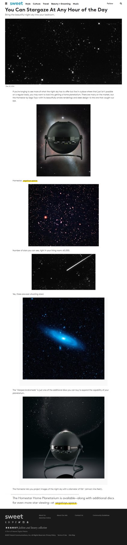 If you're longing to see more of what the night sky has to offer but live in a place where that just isn't possible on a regular basis, you may want to look into getting a home planetarium. There are many on the market, but the Homestar by Sega Toys—with its beautifully ornate renderings and sleek design—is the one that caught our eye.