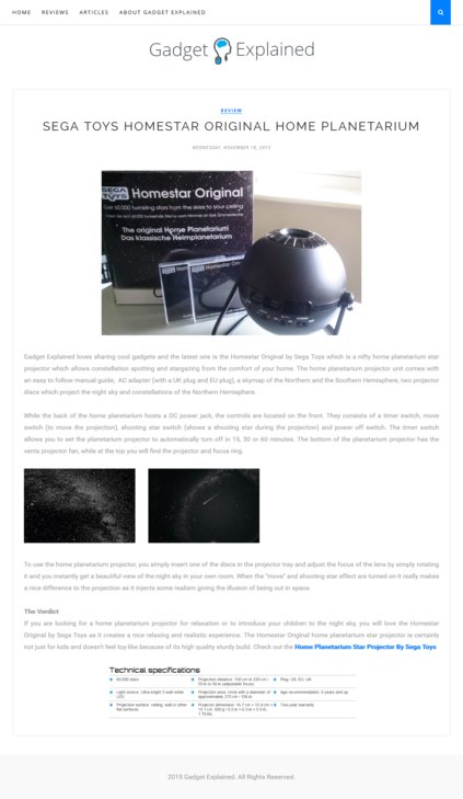 Gadget Explained loves sharing cool gadgets and the latest one is the Homestar Original by Sega Toys which is a nifty home planetarium star projector which allows constellation spotting and stargazing from the comfort of your home. The home planetarium projector unit comes with an easy to follow manual guide, AC adapter (with a UK plug and EU plug), a skymap of the Northern and the Southern Hemisphere, two projector discs which project the night sky and constellations of the Northern Hemisphere.