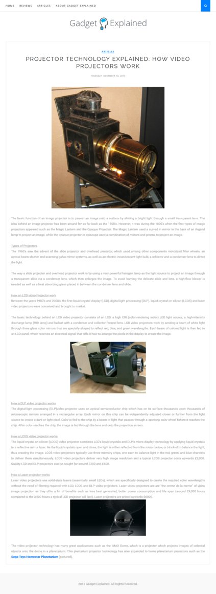 The basic function of an image projector is to project an image onto a surface by shining a bright light through a small transparent lens. The idea behind an image projector has been around for as far back as the 1500's. However, it was during the 1800's when the first types of image projectors appeared such as the Magic Lantern and the Opaque Projector. The Magic Lantern used a curved in mirror in the back of an Argand lamp to project an image, while the opaque projector or episcope used a combination of mirrors and prisms to project an image.